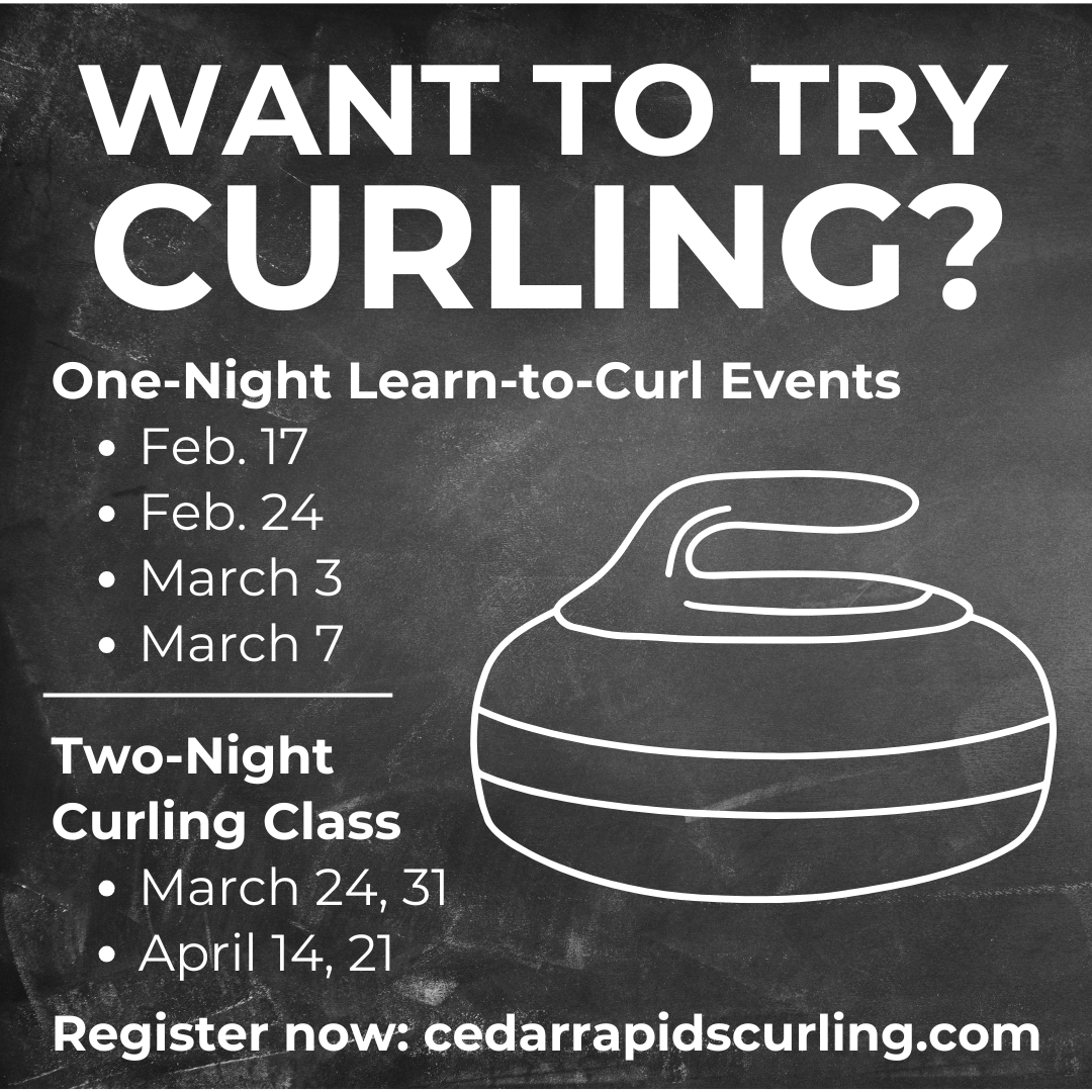 We need your help promoting our Olympic season learn-to-curl events and mini-camps. We'd love it if you'd share the fun with friends on your social media channels. Feel free to steal the below image if that helps!