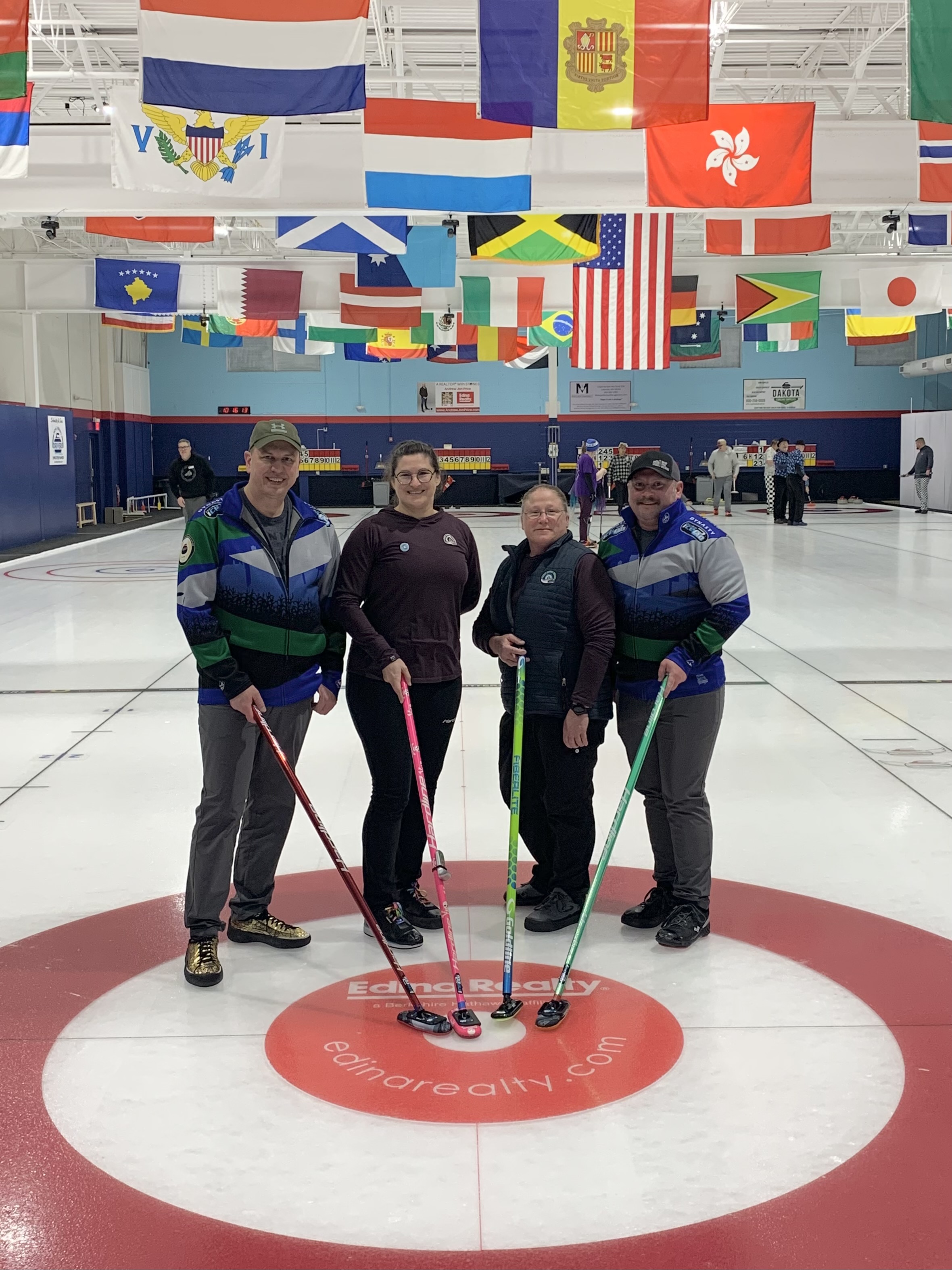Two other Cedar Rapids Teams -- Bob, Kirby, Phil, and Mark, and Cale, Emily, Beth, and Greg -- also joined the fun at the Big Spiel.